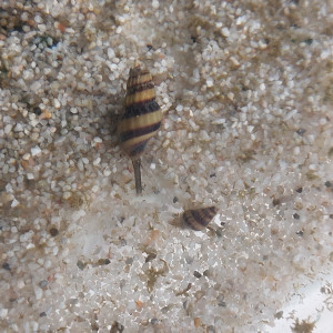 Escargots Mélanoïdes (petits, gris-brun, en forme de cône)